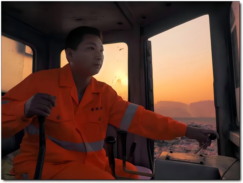徐開鋒臨危受命,在填埋場當(dāng)推土機駕駛員。每天的工作就是把400多噸的垃圾推平壓實。每到夏、秋季節(jié),臭氣熏天的垃圾引來更多的蒼蠅“光顧”,用徐開鋒同事的話說,“遠(yuǎn)看徐開鋒就好像穿了一副‘將軍鎧甲',蒼蠅扒在他的臉上、手上、背上……”彼時的徐開鋒已經(jīng)是一名7歲女孩的父親,但為了應(yīng)對繁重的工作,他每天5點鐘就騎著摩托車出了門,等到晚上回家時,女兒多半已經(jīng)睡著了。“領(lǐng)導(dǎo)把我安排到這個崗位,我就要崗位上做出個樣!”,正是胸懷這份“執(zhí)拗”,他在填埋場推土機駕駛員崗位上堅持了11年。